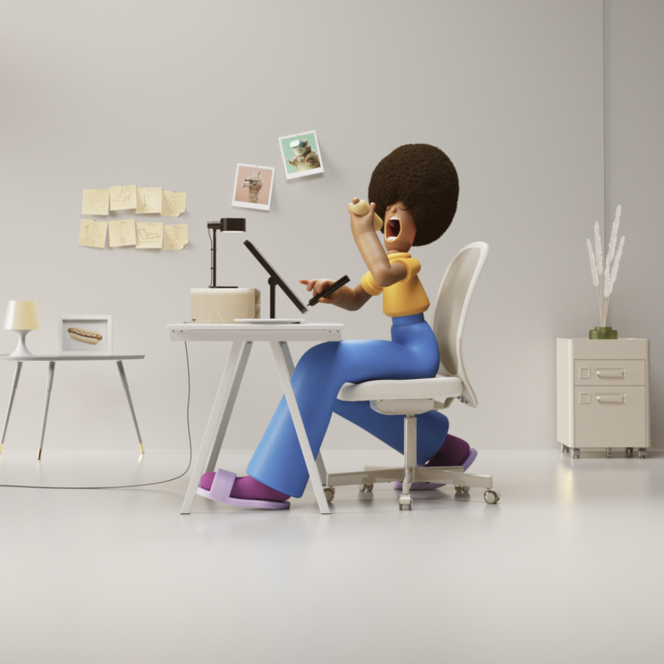 One of two spots created for IKEA. A Designer sits at her desk searching for inspiration. She takes a bite of IKEA's famous Hotdog and the ideas begin to flow.
