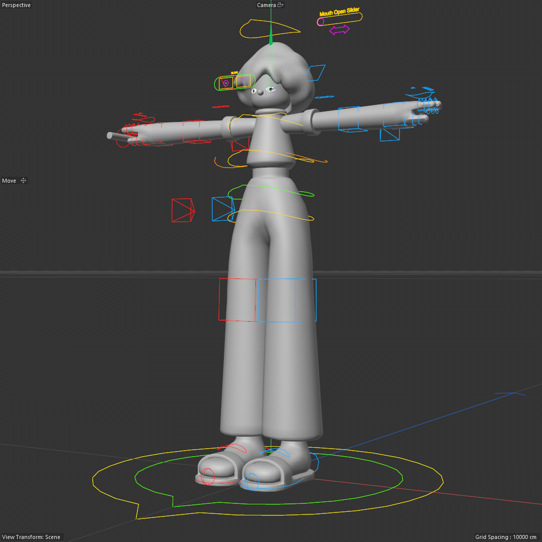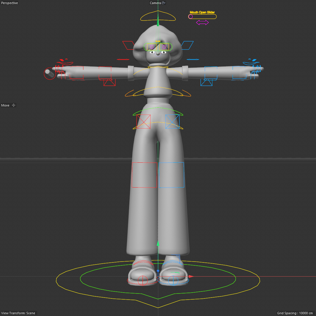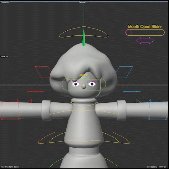 I rigged the character and prepared the scene, which was then sent to the character animator off site. A custom head rig needed to be created to support the mouth opening animation.